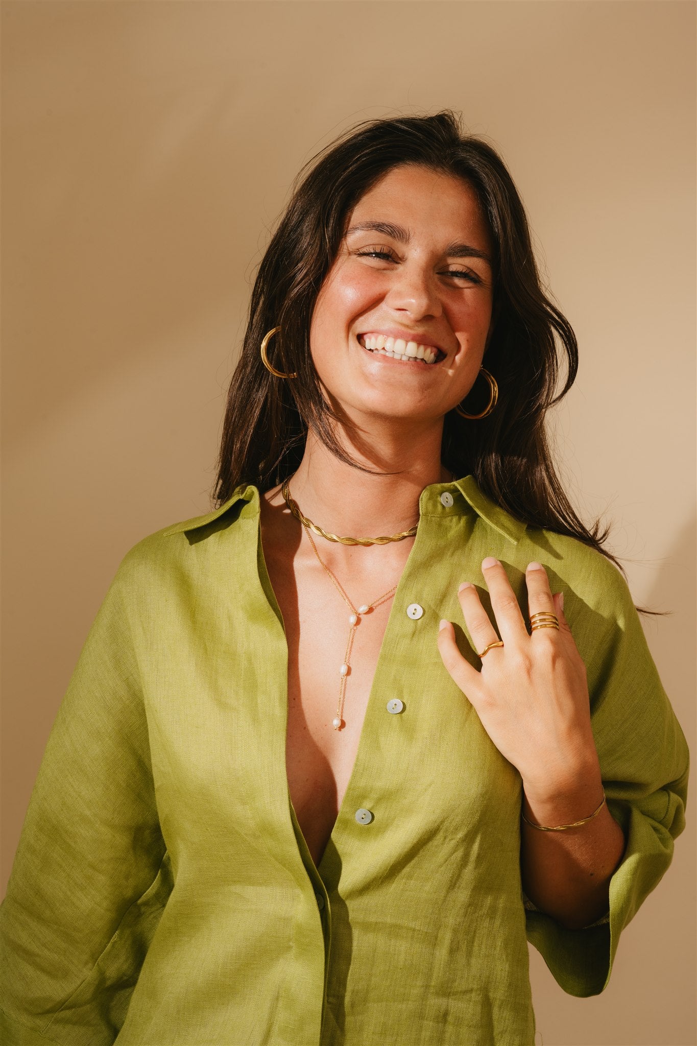Our tip is to keep wearing the brass jewelry for longer time. The oil from your skin will help clean and maintain your brass pieces. Also a shower or a dip in the ocean will help clean your jewelry.