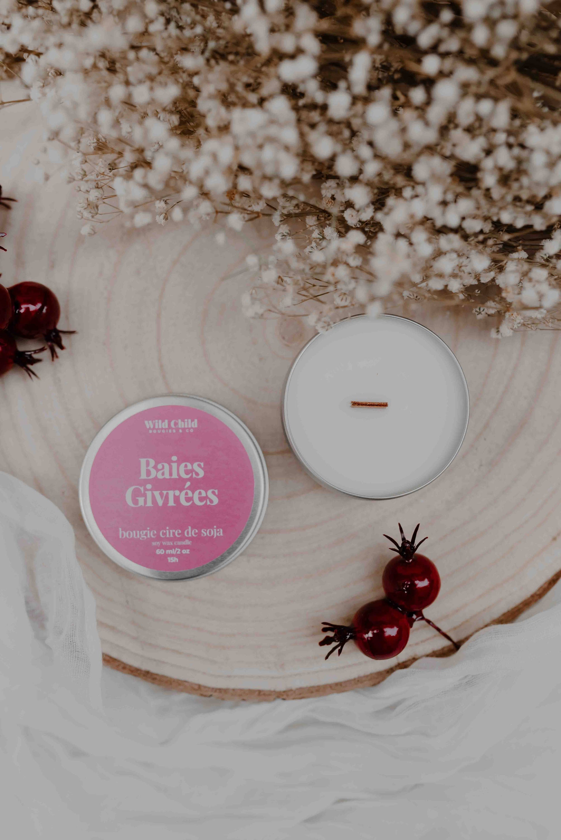 WILD CHILD Bougies & Co - “Frosted berries” Christmas candle - Vegetable wax - 15h